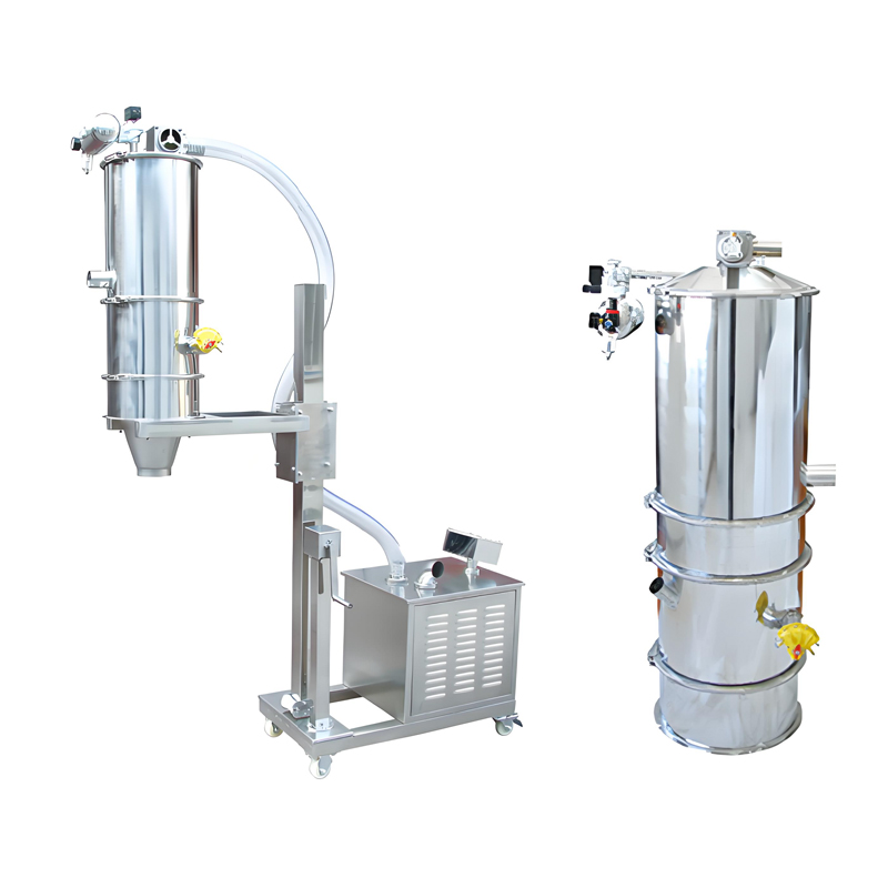 A vacuum feeder is a vacuum conveying device designed for powdery materials, granular materials, and mixed powdery-granular materials. It can automatically convey various materials into the hoppers of equipment such as silos, packaging machines, injection molding machines, and crushers. It can also directly convey mixed materials into mixers (e.g., V-type mixers, two-dimensional mixers, three-dimensional mixers, etc.). This equipment reduces workers' labor intensity and solves problems such as dust overflow during feeding. It is an essential device for pharmaceutical factories and food factories to obtain GMP certification, promote clean production, and achieve standardized workshop operations.