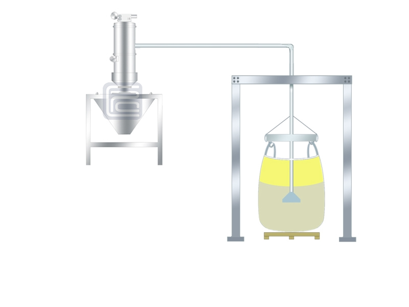 說明:此種吸料方式是由下往上吸料,拆包機(jī)下部出口需加裝補(bǔ)氣裝置。